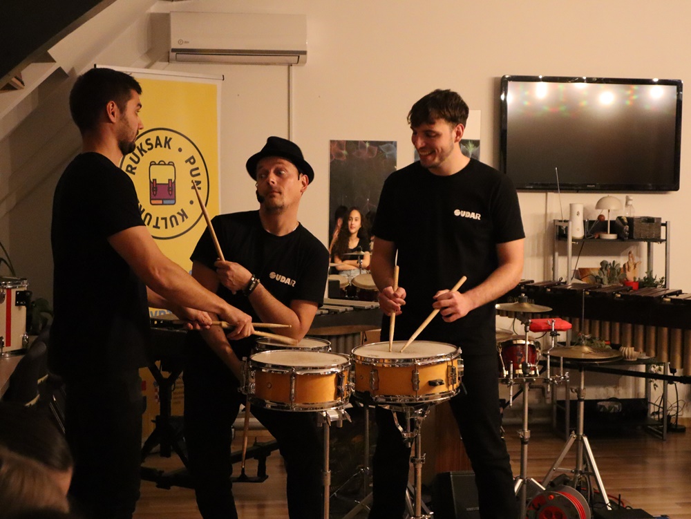Projekt „Ruksak (pun) kulture“, koji provodi Ministarstvo kulture i medija Republike Hrvatske u suradnji s Ministarstvom znanosti i obrazovanja ima za cilj približiti umjetnost i kulturu djeci i mladima diljem Hrvatske. Nastup Sudar Percussion ansambla u našem domu još je jednom potvrdio koliko su takvi susreti dragocjeni za poticanje stvaralaštva, interesa i kulturne osviještenosti mladih.